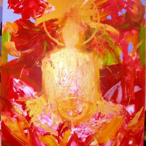 De Boeddha Dharma vormt hierin een belangrijke inspiratiebron. Vandaar ook dat er door de jaren heen veel Boeddha’s in allerlei vormen in mijn werk verschenen: bijna verborgen in mijn olieverf luchten, fragiel maar krachtig in een inktstreek op rijstpapier of heel uitgesproken bont en kleurrijk op acryldoeken.